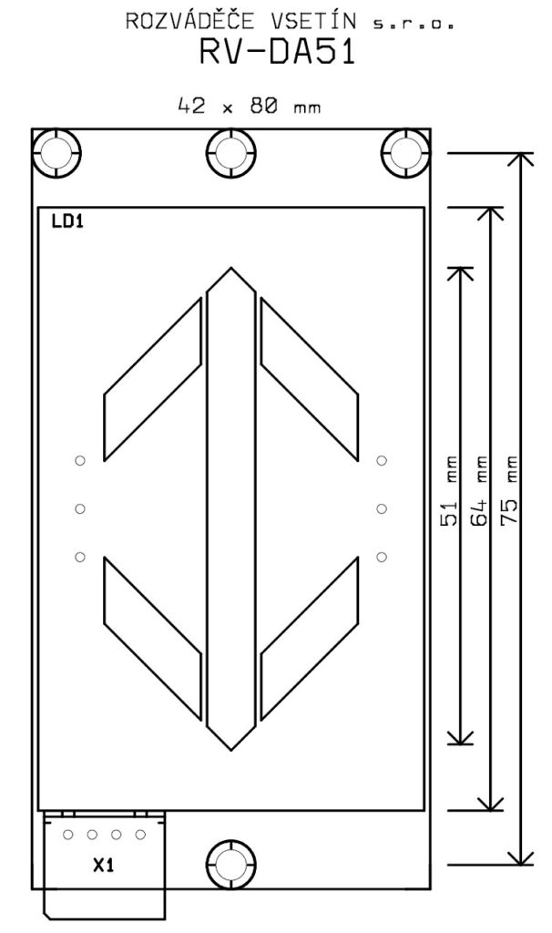 Rozměry svítících segmentů (šipek): 23 x 51 mm